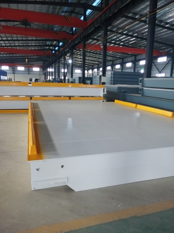 汽車(chē)衡面板采用自動(dòng)埋弧焊機(jī)拼焊,采用全自動(dòng)多頭氣體保護(hù)焊機(jī)進(jìn)行滿(mǎn)焊,秤體端板經(jīng)過(guò)技術(shù)人員刻苦公關(guān)采用平焊焊接,避免立焊焊接的人為因素,確保焊接質(zhì)量。具備專(zhuān)用的預(yù)反拱設(shè)備和工藝規(guī)程保證焊接質(zhì)量。